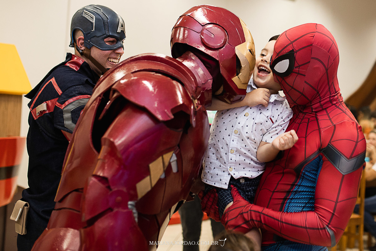 Uau, e não é que eles apareceram outra vez? Capitão América, Homem de Ferro e Homem Aranha vieram e, desta vez, para uma data muito querida: 4 aninhos do Lucas.