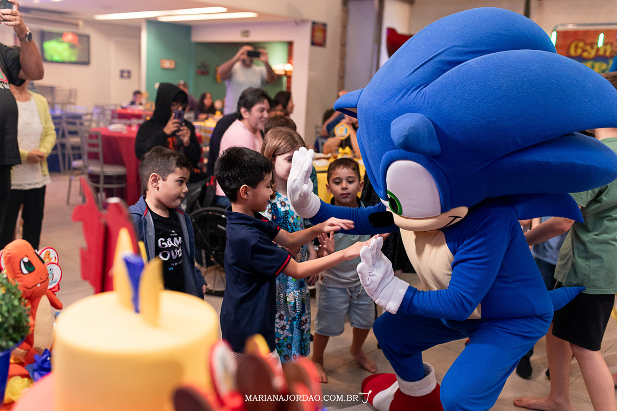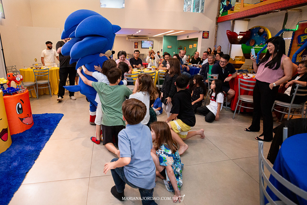 Henrique e os amiguinhos eram animação pura! Aproveitaram tudo e tanto!! No meio da festa, ainda tiveram uma surpresa: Pikachu não pôde ir, mandou o Sonic em seu lugar rsrsrsrsrs. Coisa mais fofa! Até alguns passinhos de dança o Henrique aprendeu com ele. Para o parabéns, mais alegria. E viva o Henrique!
