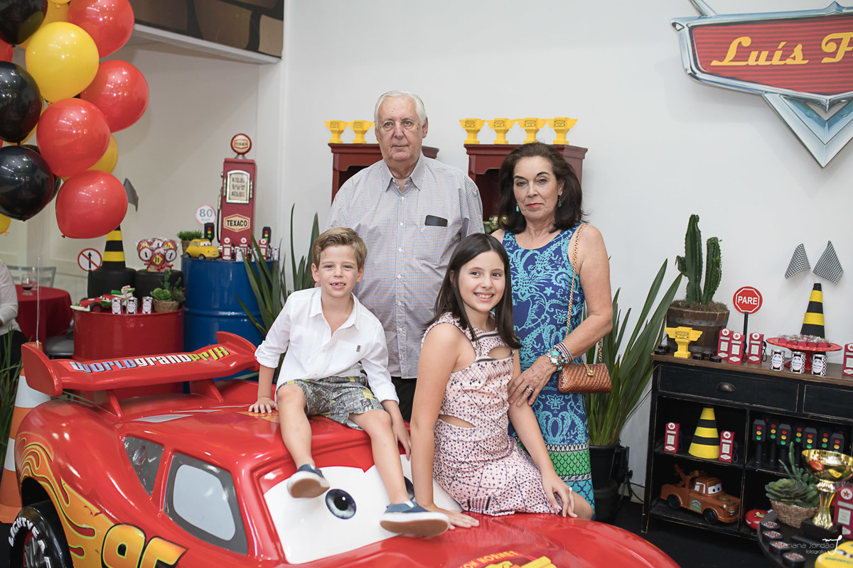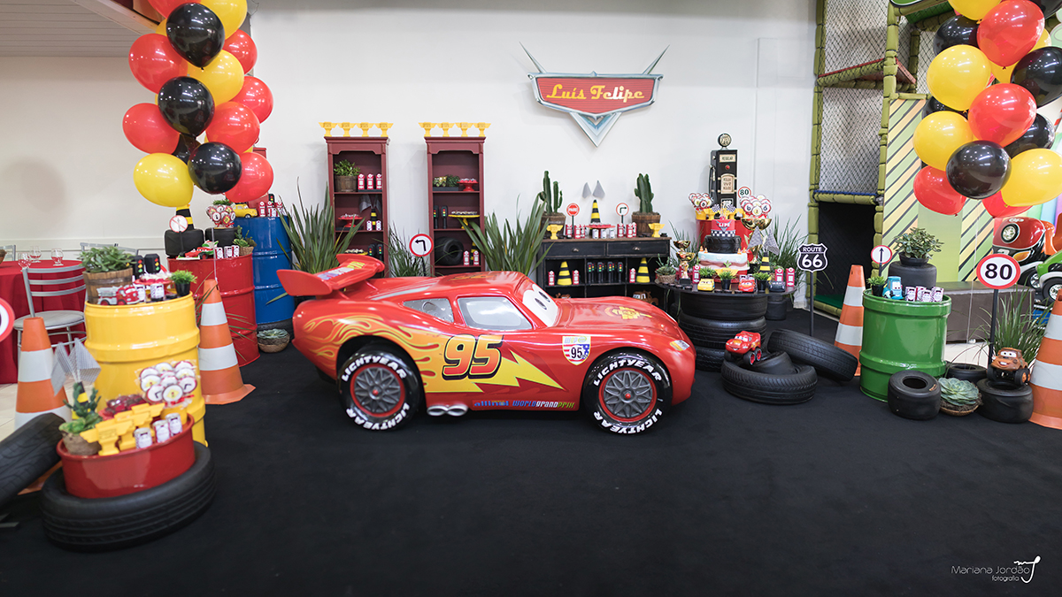 Seis anos do Luís Felipe chegando de carona com o Relâmpago McQueen por aqui. Que festa linda, gente!