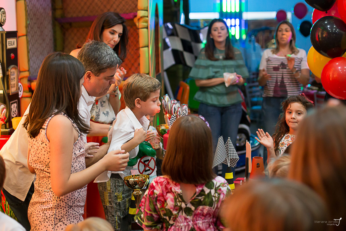 Foi o próprio Lipe quem escolheu o tema Carros, quem escolheu também o Palhaço Dentinho para animar a festa e juntou os amiguinhos todos pra comemorar seu sexto aniversário. Pensa na carinha de felicidade mais linda e no sorrisão mostrando a janelinha, quando chegou e se deparou com o McQueen bem grandão, no meio do salão!
