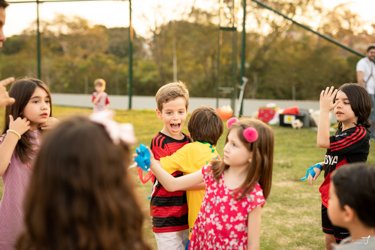 E nós sonhamos junto. Na verdade, sempre pegamos carona de volta no tempo, quando a Kity escreve "Mari, vamos fazer a festinha do Luís Felipe/ da Maria Beatriz, tal dia. Você está disponível para estar conosco?". Sempre que essa mensagem aparece por aqui, já nos colocamos a arrumar nossas coisas, porque sabemos que a viagem será boa. E como foi! Esse cheiro de infância, das memórias que guardamos no coração, só tornam tudo mais especial ainda, quando decidimos apertar os botões das nossas câmeras: o jogo com os amigos, o gol defendido, a vitória na corrida do pega rabinho, lanche coletivo, os abraços (quase gana) de felicidade, o frio na barriga na hora do parabéns e a fuga na hora do bendito com quem será! É liberdade, é poesia, é cheiro de ser criança. Ser criança!