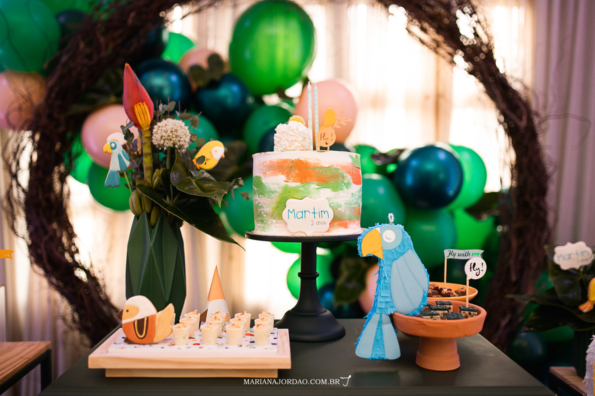 Na frente do bolo tinha uma arara azul. E aves espalhadas pela decoração inteira. Só conseguia me lembrar da tatuagem no braço da Tati, que despertou minha curiosidade no ano passado e, neste ano, continua fazendo sentido "Alis volat propiis" (você lembra?). Martim segue cada vez mais firme nessa de voar com as próprias asas. Tanta novidade desde o ano passado pra cá! E a voz que chama "mãe" foi a primeira vez que ouvi. Sigo também lembrando do texto de Rubem Alves, porque ele cabe direitinho aqui outra vez "O desmame, os primeiros passos, o primeiro dia na escola, a primeira dormida fora de casa, a primeira viagem…Desde o nascimento de nossos filhos, temos a oportunidade de aprender sobre esse estranho movimento de ir e vir, segurar e soltar, acolher e libertar. Nem sempre percebemos que esses momentos tão singelos são pequenos ensinamentos sobre o exercício da liberdade... Não adianta querer que seja diferente: o amor é alado".