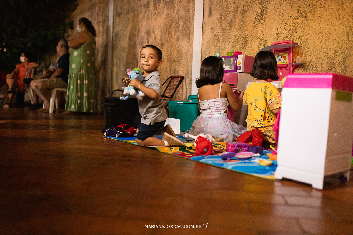 O espaço de eventos, neste ano, foi super especial: a casa da vovó, onde ele tem o maior prazer de estar. A recreação ficou por conta dos brinquedos da Juju e da brincadeira mais frio na barriga de todos os tempos: pique esconde. Porque um quintal como este tem muitos cantinhos pra se esconder e muito espaço pra sair correndo também! No fim, pés descalços, cabelinhos suados e alegria no coração! Que mais a gente pode esperar de bom?!